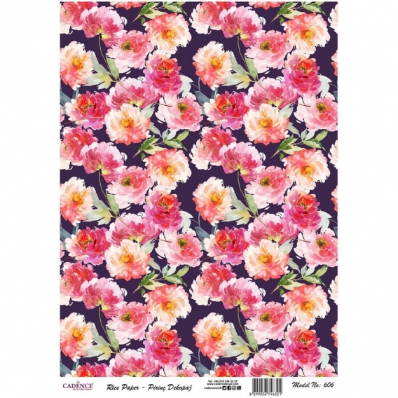 Pirinç kağıt dekopajlar çeltik sapından yapılan ince kâğıt üzerine basılı olup, dekopaj çalışmaları için kullanımı kolay, ince ve dirençli her türlü yüzeyde Cadence Decoupage Plus ile keyifle kullanılabilir. Tasarımlar Cadence için özel hazırlanmıştır.