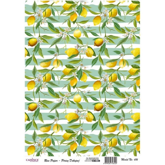 Pirinç kağıt dekopajlar çeltik sapından yapılan ince kâğıt üzerine basılı olup, dekopaj çalışmaları için kullanımı kolay, ince ve dirençli her türlü yüzeyde Cadence Decoupage Plus ile keyifle kullanılabilir. Tasarımlar Cadence için özel hazırlanmıştır.