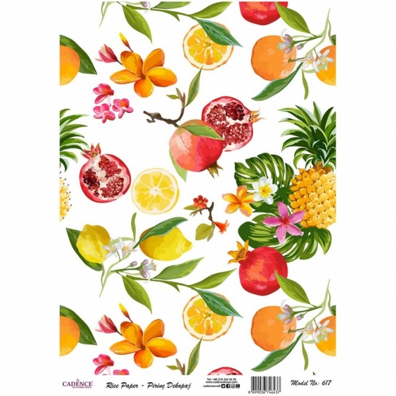 Pirinç kağıt dekopajlar çeltik sapından yapılan ince kâğıt üzerine basılı olup, dekopaj çalışmaları için kullanımı kolay, ince ve dirençli her türlü yüzeyde Cadence Decoupage Plus ile keyifle kullanılabilir. Tasarımlar Cadence için özel hazırlanmıştır.