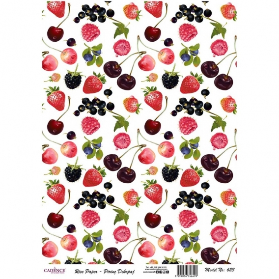 Pirinç kağıt dekopajlar çeltik sapından yapılan ince kâğıt üzerine basılı olup, dekopaj çalışmaları için kullanımı kolay, ince ve dirençli her türlü yüzeyde Cadence Decoupage Plus ile keyifle kullanılabilir. Tasarımlar Cadence için özel hazırlanmıştır.