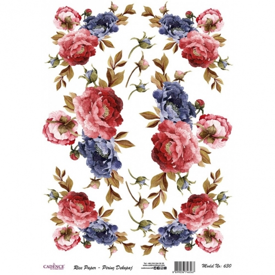 Pirinç kağıt dekopajlar çeltik sapından yapılan ince kâğıt üzerine basılı olup, dekopaj çalışmaları için kullanımı kolay, ince ve dirençli her türlü yüzeyde Cadence Decoupage Plus ile keyifle kullanılabilir. Tasarımlar Cadence için özel hazırlanmıştır.