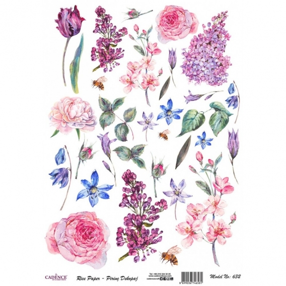 Pirinç kağıt dekopajlar çeltik sapından yapılan ince kâğıt üzerine basılı olup, dekopaj çalışmaları için kullanımı kolay, ince ve dirençli her türlü yüzeyde Cadence Decoupage Plus ile keyifle kullanılabilir. Tasarımlar Cadence için özel hazırlanmıştır.