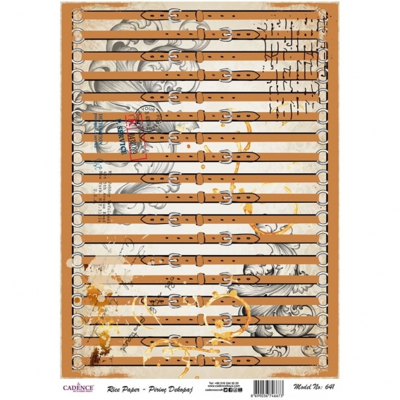 Pirinç kağıt dekopajlar çeltik sapından yapılan ince kâğıt üzerine basılı olup, dekopaj çalışmaları için kullanımı kolay, ince ve dirençli her türlü yüzeyde Cadence Decoupage Plus ile keyifle kullanılabilir. Tasarımlar Cadence için özel hazırlanmıştır.