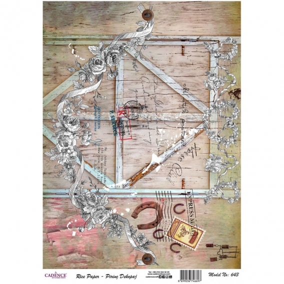 Pirinç kağıt dekopajlar çeltik sapından yapılan ince kâğıt üzerine basılı olup, dekopaj çalışmaları için kullanımı kolay, ince ve dirençli her türlü yüzeyde Cadence Decoupage Plus ile keyifle kullanılabilir. Tasarımlar Cadence için özel hazırlanmıştır.