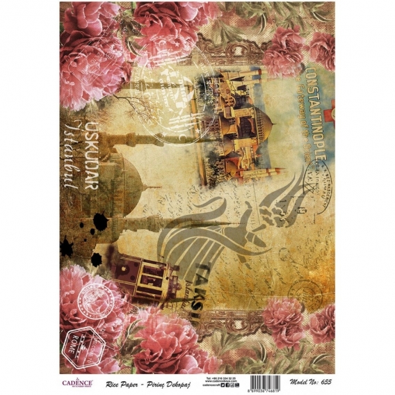 Pirinç kağıt dekopajlar çeltik sapından yapılan ince kâğıt üzerine basılı olup, dekopaj çalışmaları için kullanımı kolay, ince ve dirençli her türlü yüzeyde Cadence Decoupage Plus ile keyifle kullanılabilir. Tasarımlar Cadence için özel hazırlanmıştır.