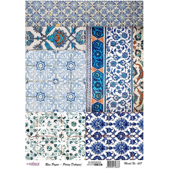 Pirinç kağıt dekopajlar çeltik sapından yapılan ince kâğıt üzerine basılı olup, dekopaj çalışmaları için kullanımı kolay, ince ve dirençli her türlü yüzeyde Cadence Decoupage Plus ile keyifle kullanılabilir. Tasarımlar Cadence için özel hazırlanmıştır.