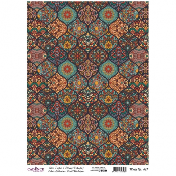 Pirinç kağıt dekopajlar çeltik sapından yapılan ince kâğıt üzerine basılı olup, dekopaj çalışmaları için kullanımı kolay, ince ve dirençli her türlü yüzeyde Cadence Decoupage Plus ile keyifle kullanılabilir. Tasarımlar Cadence için özel hazırlanmıştır.